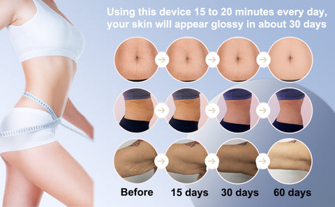Використовуючи цей пристрій протягом 15-20 хвилин щодня, ваша шкіра стане сяючою, зосередиться на проблемних місцях, зменшиться вдавлення шкіри та утворення грудок жиру, роблячи лінії та зморшки непомітними.