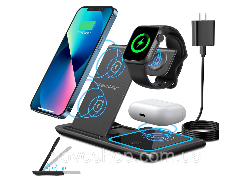 🔋 【Складний бездротовий зарядний пристрій 3 в 1 із адаптером швидкого заряджання 18 Вт】Наш бездротовий зарядний пристрій (адаптер у комплекті) може одночасно заряджати більшість телефонів, телефонів Apple/iWatches/Airpods, зберігаючи настільні комп’ютери акуратними та організованими, а також його можна використовувати як підставка для телефону. Швидка зарядка через 18 Вт Бездротовий зарядний пристрій повністю заряджає ваш телефон приблизно за 3 години. Він підходить для серії Apple AirPods 2/3/AirPods Pro та Apple Watch 7/6/5/4/3/2/se. 【Несумісний із Samsung Watch】.